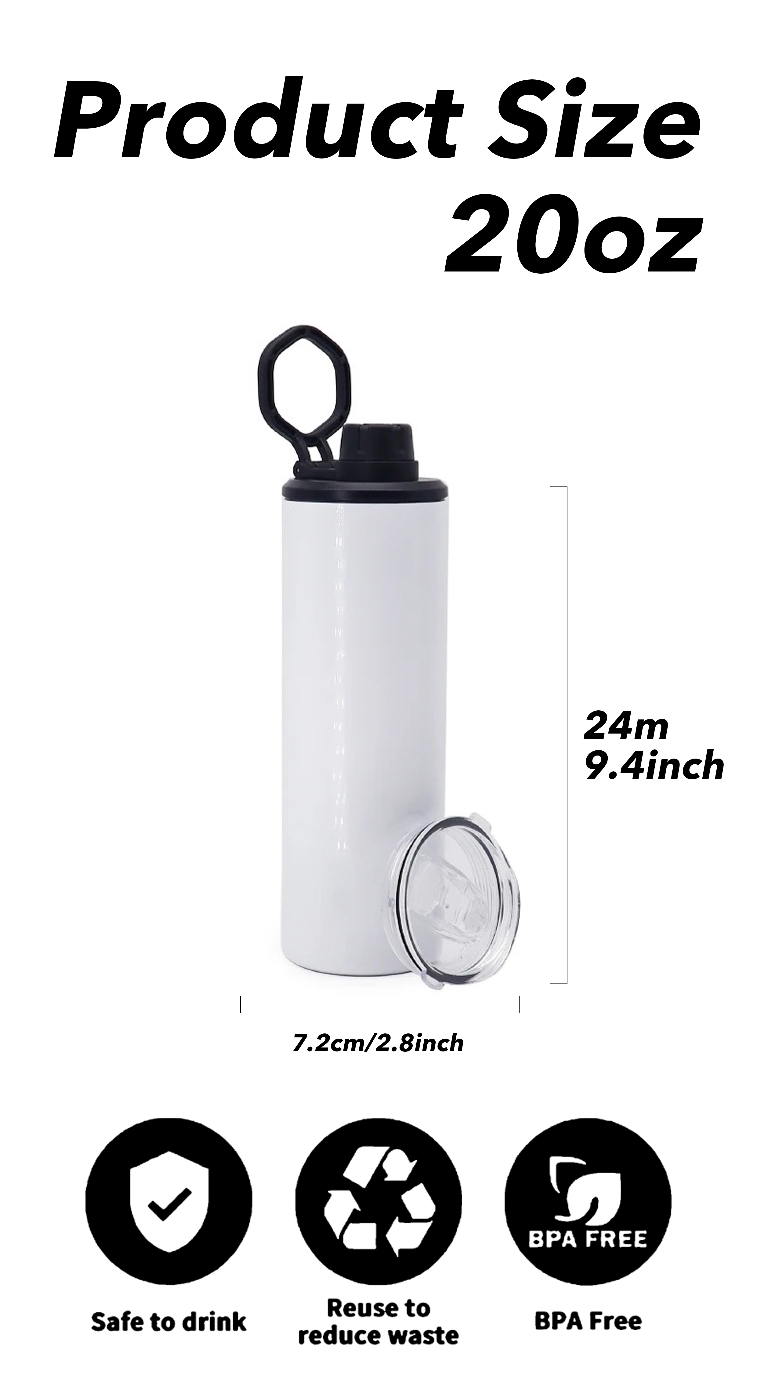 Стиль: бутылка для воды емкостью 20 унций с 2 крышками.